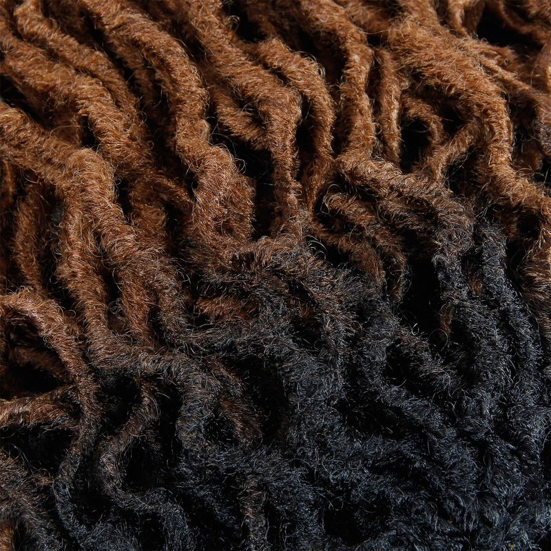 24inch Goddess Locs Crochet Braids Ombre Wavy Faux Locs Crochet Hair Curly Ends Dreadlocks Synthetic Braiding Hair Extensions (6Packs, 1B/30)