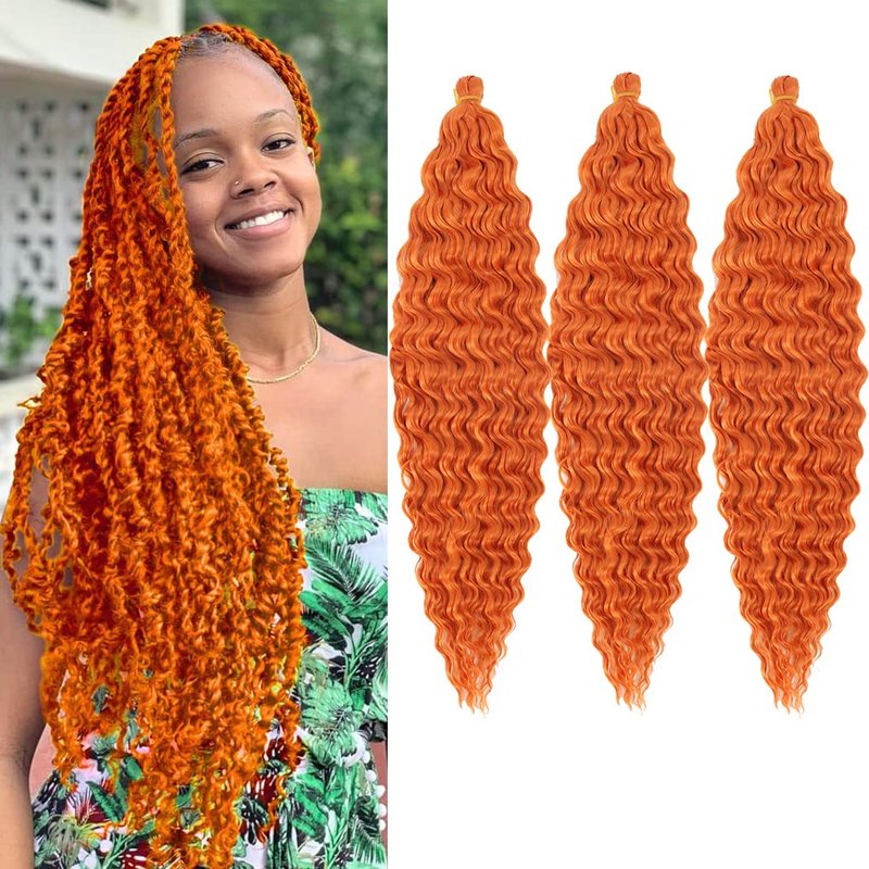 24inch Ocean Wave Braiding Hair Extensions 3packs Long Deep Curly Wave Braid Hair Synthetic Twist Ripple Crochet Deep Wave Braids Hair for Women 100g/pack(24",Orange)