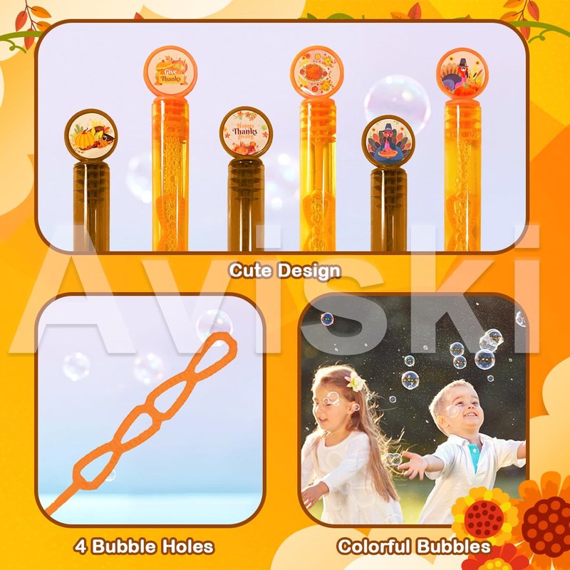 - 【SUPER VALUE PACK】This Thanksgiving bubbles come in 24 pack with 6 different super Fall theme patterns. Each bubble wand measure 4.2” tall and contains 0.2 oz. Endless joy and happiness for children!