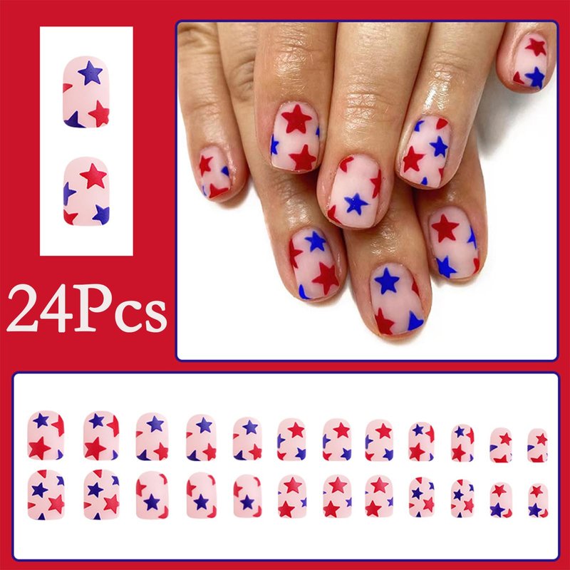 - Unique Fashion Design Nails:4th of July star press on nails offer you the most avant-garde colors, shapes, lengths. Combine the hottest trendy elements into false nails. Leading the new nail art trend.