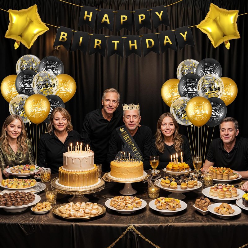 Our men's black gold birthday decorations are suitable for men's birthday party above the use, you can use to decorate your home indoor and outdoor, our products are black gold theme, can bring a strong atmosphere for the birthday party