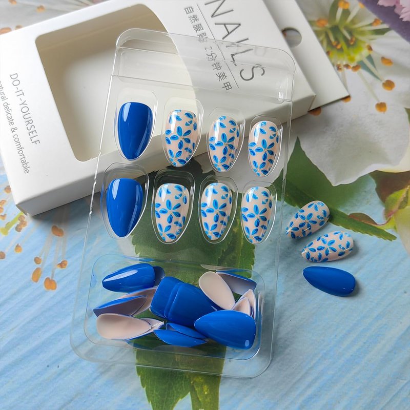 - Premium Quality Materials:Blue false nails made of high quality environmental friendly material, good flexibility, not easy to broken, not fade and waterproof, the perfect alternative to nail polish. what's more is non-toxic to your body or your nails.