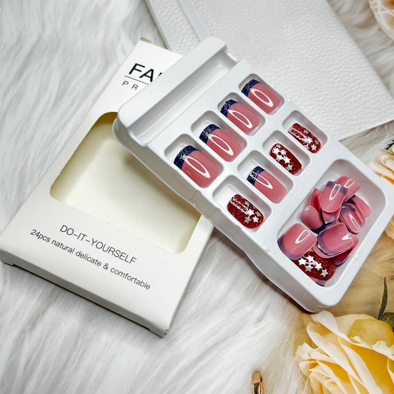 - Unique Fashion Design Nails:Independence Day press on nails offer you the most avant-garde colors, shapes, lengths. Combine the hottest trendy elements into false nails. Leading the new nail art trend.