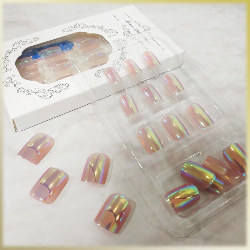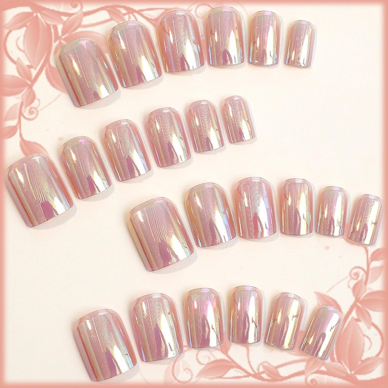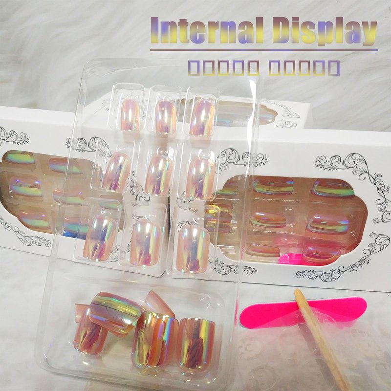 - 【Fake Nails Package Contains】 24Pcs chrome short square false nails, 24 pieces of jelly glue, 1 mini nail file, 1 wooden stick. (Durability of jelly glue is not as good as liquid glue, but it makes fake nails reusable. Please use your suitable glue according to different scenes)