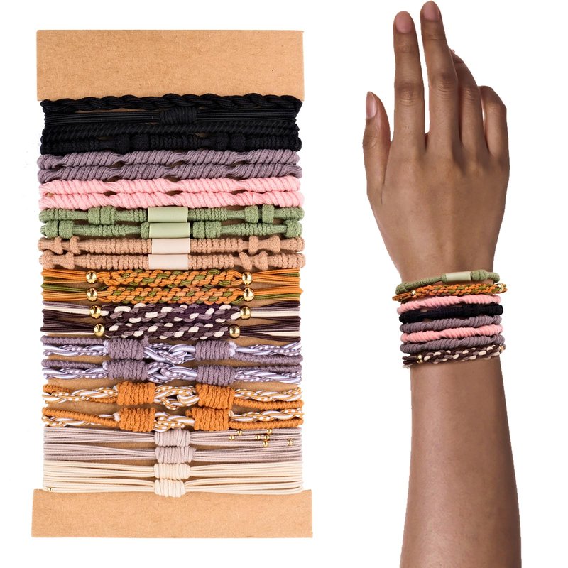 24PCS Boho Hair Ties for Women, Boarunch Hair Tie Bracelets Elastic Hair Ties for Thick Hair 6 Styles of Dual-Use Bracelets and Hair Tie No Damage Hair Accessories for Girls