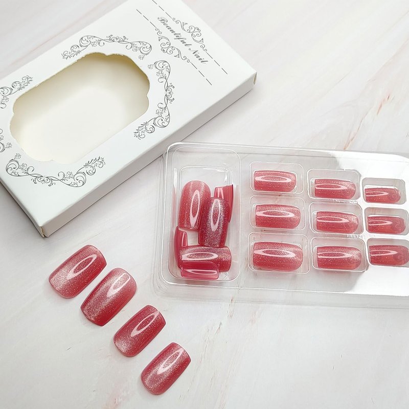 - Package: You'll get 24 pieces cat eye press on nails,1 mini nail file, 1 small wooden stick, 24 grain jelly glue. You can safely choose a fake nail that fits your finger size and DIY your desired nail shape.