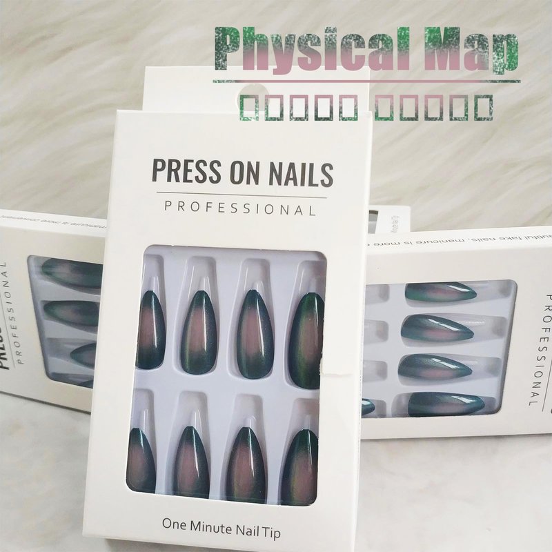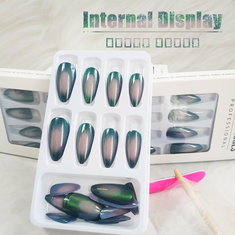 - Green Cat Eye Press on Nails - Packaged with 24pcs fake nails, 24pcs jelly glue stickers, 1pc nail file, 1pc wooden stick. 12 sizes fake nails can repeated use, suitable for different size of nails. (Durability of jelly glue is not as good as liquid glue, but it makes fake nails reusable. Jelly glue can last about 3 days or more, glue remains longer.Please use your suitable glue according to different scenes)