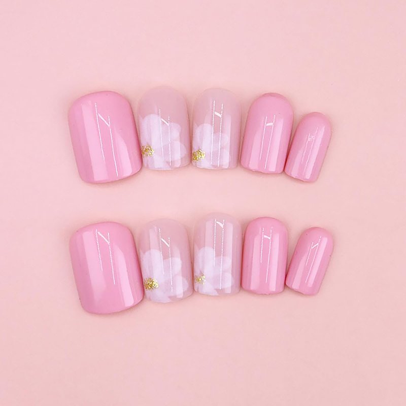 Short Press on Nails Square Cute Flower Fake Nails with Nail Glue Exquisite Design for Women Nail Art Set