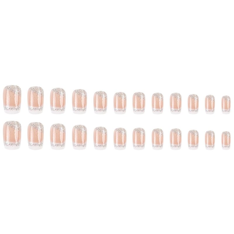 24pcs French Tip Press on Nails Medium Length White French Tip Fake Nails with Glitter Designs Glossy False Nails Glue on Nails Full Cover Artificial Nails Supplies for Women Girls Nail Decoration