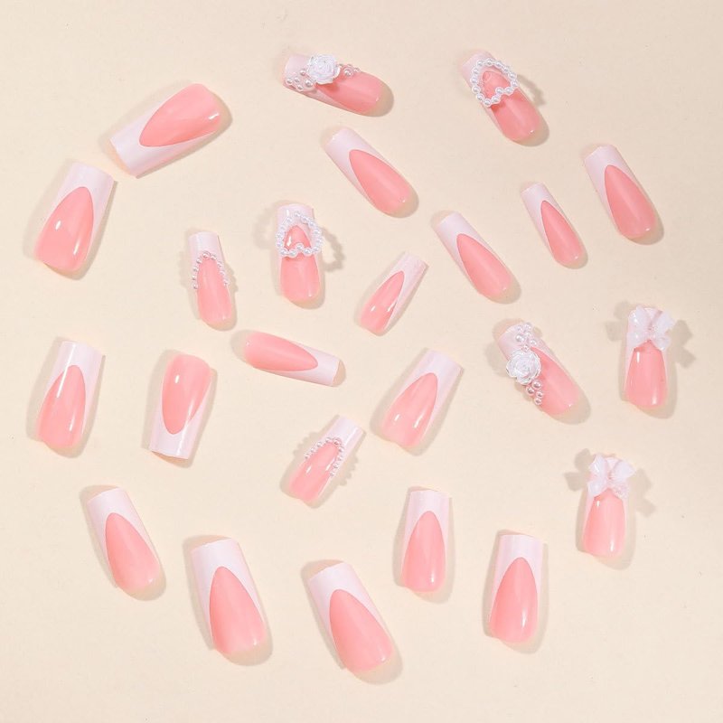 Pink Press on Nails Bow Fake Nails with Glue Exquisite Design For Women Nail Art Set