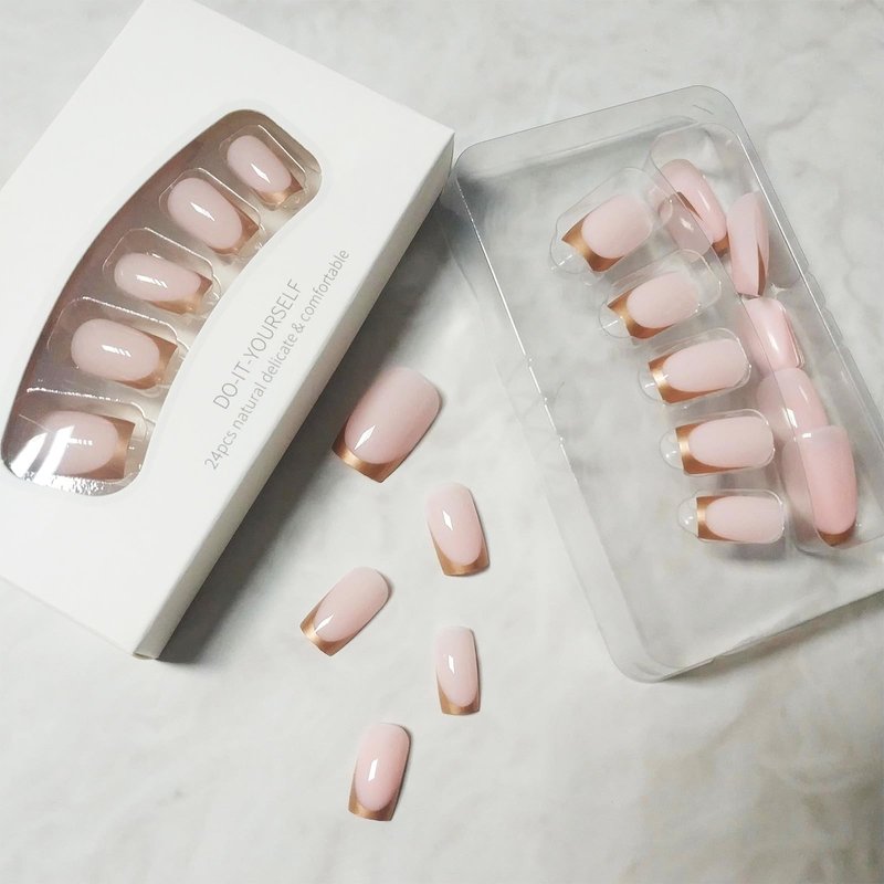 - 【Gold French Tips Fake Nails Package Contains】 24 Pcs french false nails, 24 pieces of jelly glue, 1 mini nail file, 1 wooden stick. (Durability of jelly glue is not as good as liquid glue, but it makes fake nails reusable. Jelly glue can last about 3 days or more, glue remains longer.Please use your suitable glue according to different scenes)