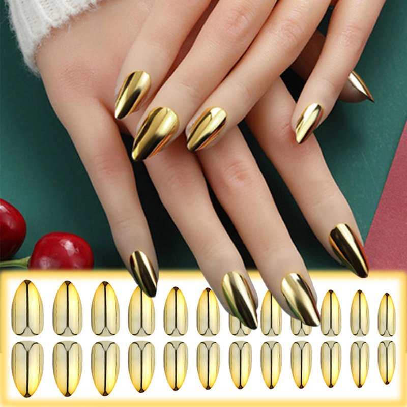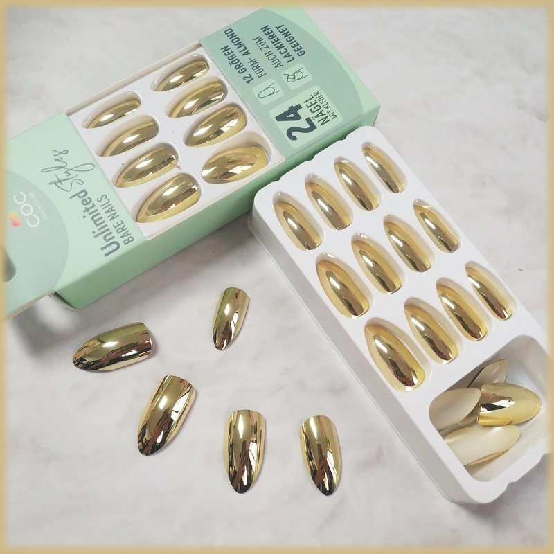 - 【High-Quality Gel Formula】 Chrome almond full cover stick on nails are made of high quality ABS material, which are flexible and sturdy. Bright gel glossy finish make the nails shine and stylish. Not easy to fade color, fall off or break. Mirror metal artificial nails can last 1-2 weeks with strong nail glue.