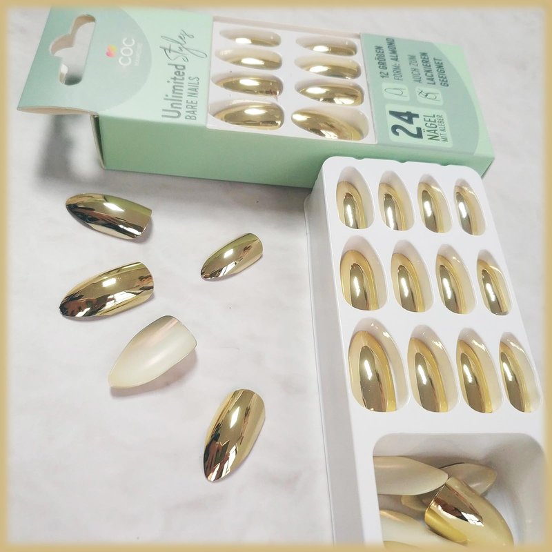 - 【Press on Finger Nails Easy to Use】Instead of spend lots time and money at nail salon, you can change you nails style in 15 min anytime and anywhere.(The gold fake nails will stay longer if you clean your nails before use, and avoid water within the first hour of wearing)
