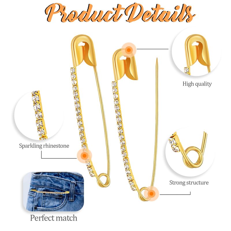 - 【Decorative Crafts】These gold safety pins serve as exquisite ornaments for women's scarves, glitter stockings, Christmas brooches, rhinestone crafts, and more.
