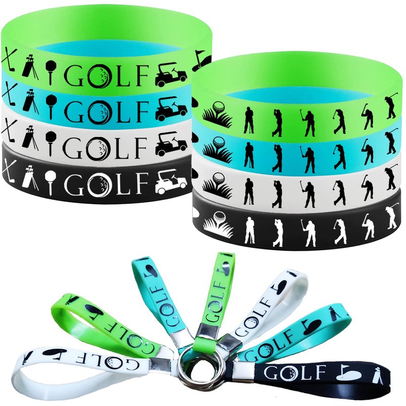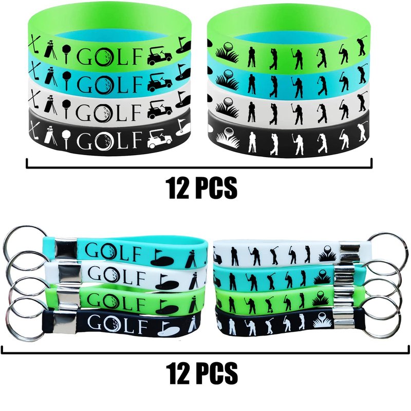- Golf party supplies set: 12 pieces of golf-themed rubber bracelets and 12 pieces of keychains, including four colors, namely black, white, blue and green., the number is enough to decorate the party.