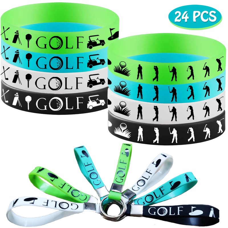 24PCS Golf Party Favors Set -Golf Rubber Bracelets Sport Silicone Wristbands Keychains/Keyrings Party Supplies Decorations Birthday Baby Shower Party Prize