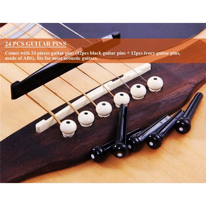 - ✔ 24 PCS GUITAR PINS - Comes with 24 pieces guitar pins (12pcs black guitar pins + 12pcs ivory guitar pins, made of ABS), fits for most acoustic guitars.
