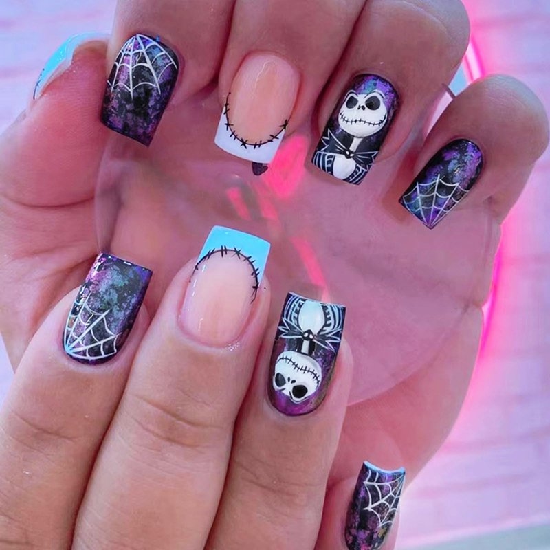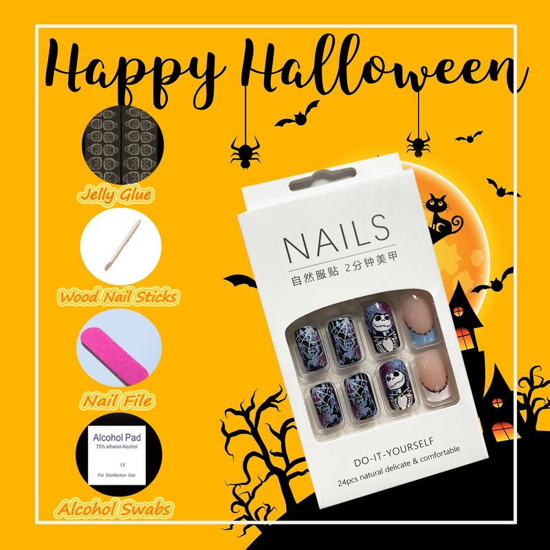 - 🕸️【Package Include】:A box contains 24 pieces Halloween square fake nails, a nail file and 24 pieces jelly glues, the fake nails are divided into 12 different sizes, 1 piece alcohol cotton and 1 pieces wooden stick for removing nail tips. It is convenient for you to choose the fake nails that suit your nail.