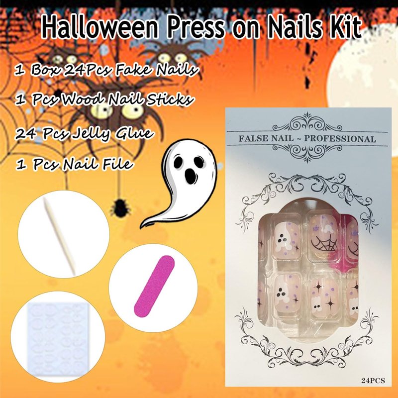 - Easy to Use: Cute ghost fake nails, just clean and polish your nails, select the correct sizes of our Halloween nails, stick jelly glue then press tips on nail for 20 seconds, no need to buy extra material to have an exquisite false nails