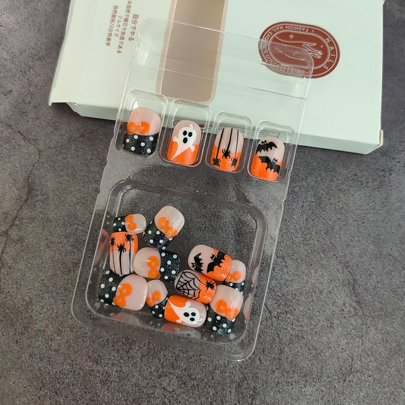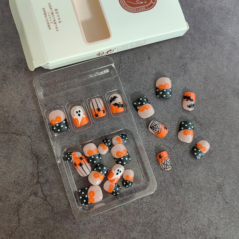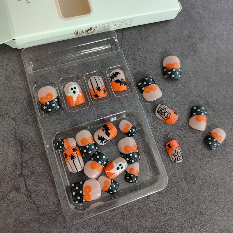 - 【Material】Spooky false nails with ghosts spiders designs are made with acrylic material, not easy to chip or break or fade. We provide you with a jelly kit that won't hurt natural nails, Providing you with a comfortable manicure experience.