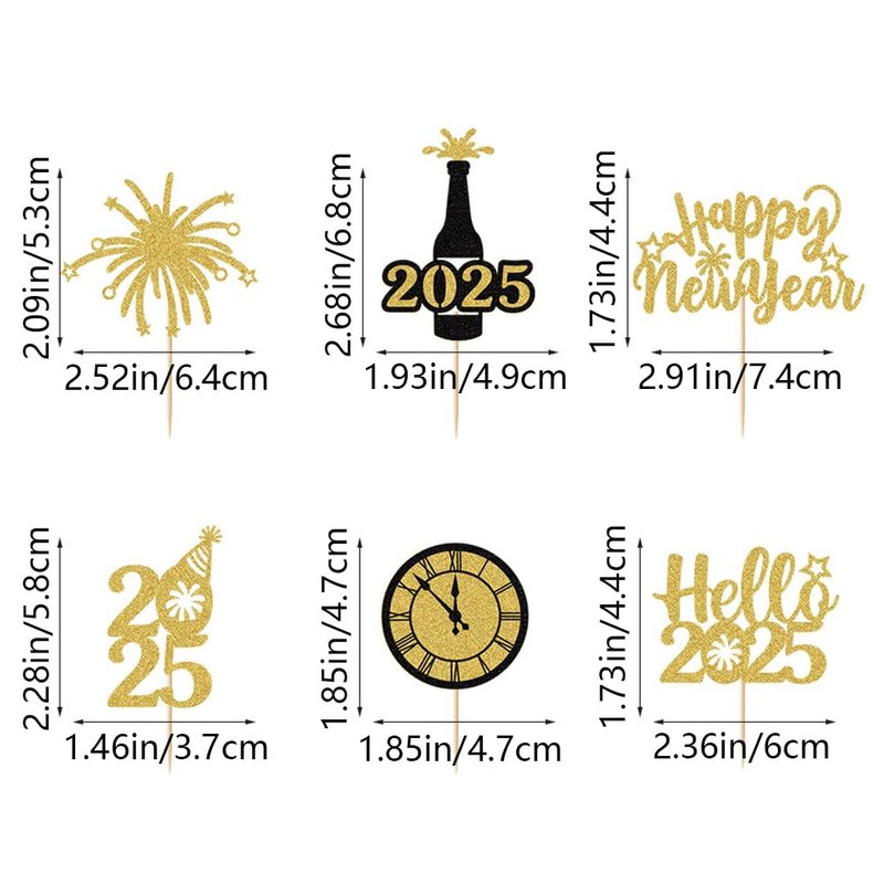 - NO DIY: These 2025 new year cupcake toppers are assembled in advance, so you don't have to assemble them yourself. You can simply stick them into your cake or cupcake and adjust the appropriate height for a better effect.