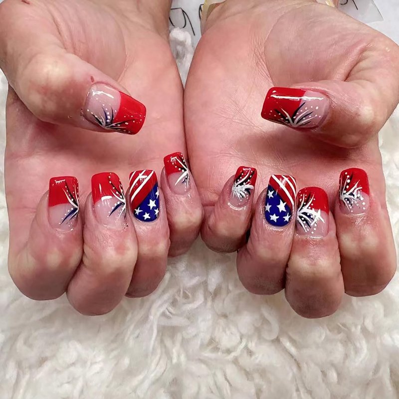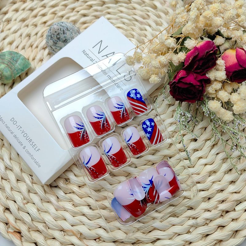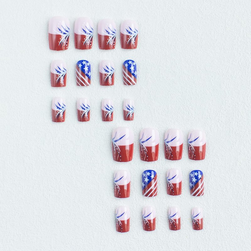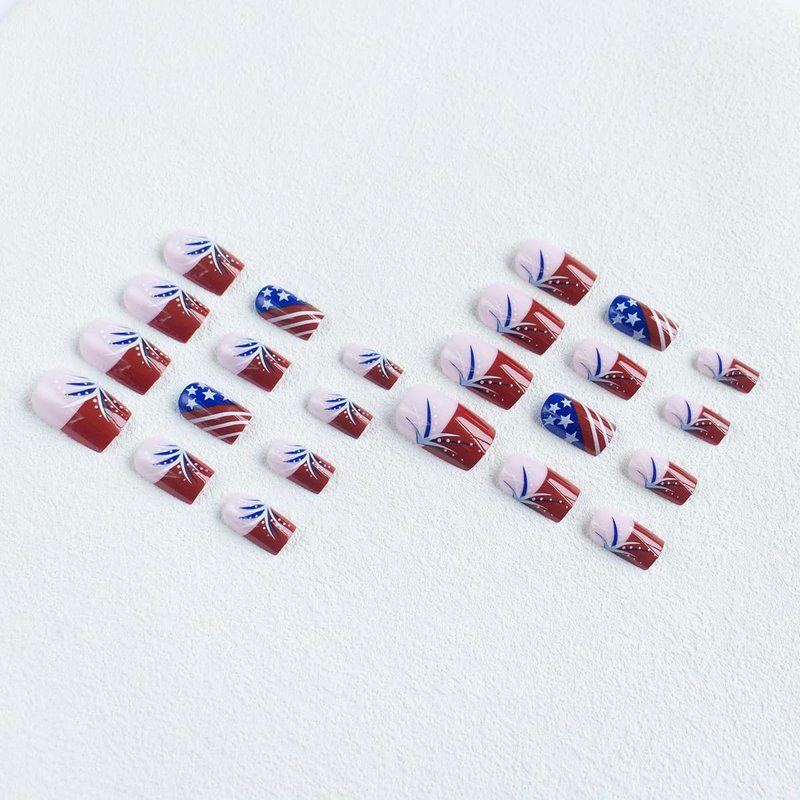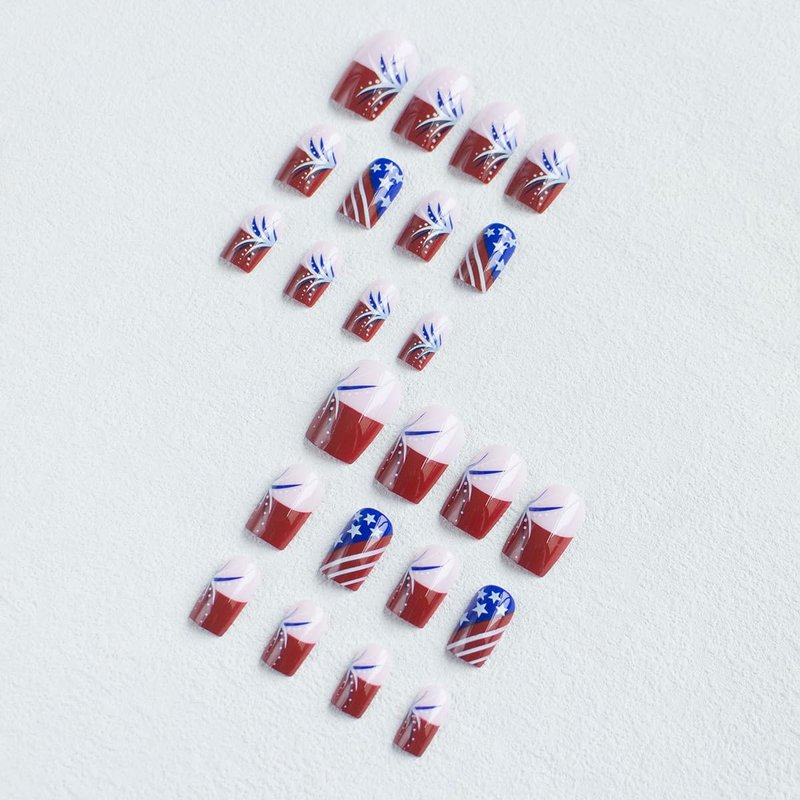 - Independence Day Nails Kit : 24 PCS ,12 different sizes of 4th of July press on nails short , 24 * jelly glue, 1 * nail file, 1 * wooden stick. Help you wear these independence day fake nails better. A full range of tools meet all your wearing needs. It can be worn repeatedly so that you can replace it at any time, and it can better protect your nails.
