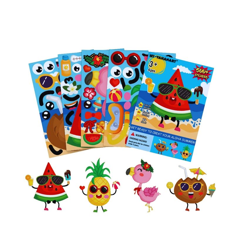 - CREAT ALOHA SUMMER: They have Hawaii theme stickers to make a very unique face. It will get their creativity flowing&keep their attention&make them use their imagination. You will love to see them delight. It is also great for quiet time.