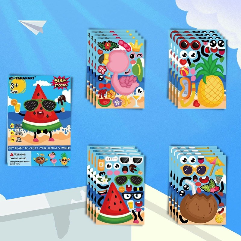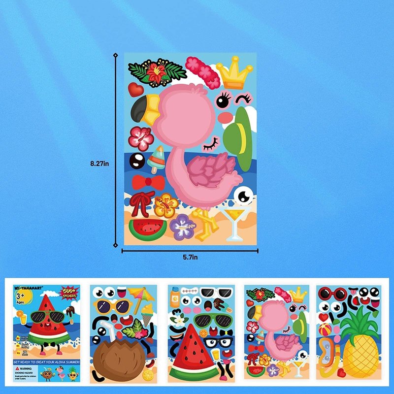 24PCS Make-A-Face Sticker Sheets, Make Your Own Flamingo Pineapple Stickers, Stickers of Kids Favorite Luau Party, Summer Beach Mix and Match Stickers for Boy Girls