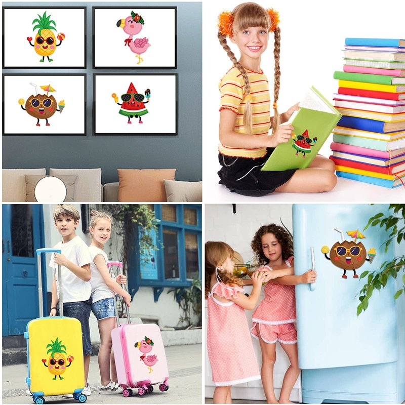 PACKAGE INCLUDE:24 sticker sheets, pineapple*6,flamingo*6, watermelon*6, coconut*6