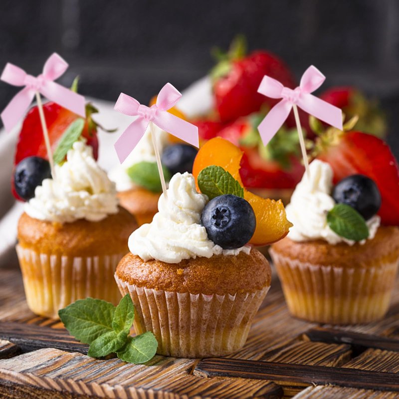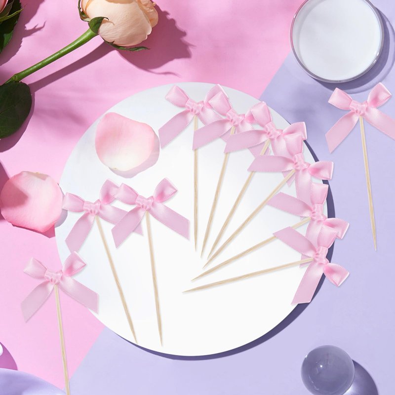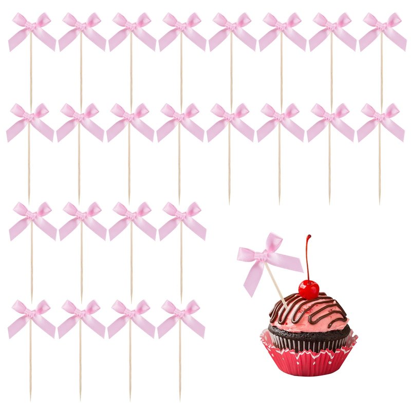 - 【Pink Bow Cupcake Toppers】30 pcs cupcake toppers, Our cupcake toppers has been pasted, a package of 24pcs, and our bow is not made of paper, but of cloth. Not easily damaged.