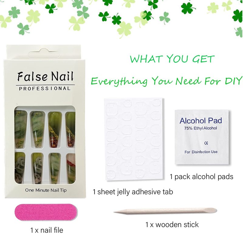 - 💅【Package Includes】You will get 24 long coffin press on nails in 12 sizes, 1 nail file and 24 jelly glues,1 alcohol bag 1 small wooden stick.