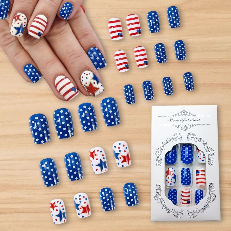 - Quality Material: These Independence Day short square false nails are made of quality acrylic material, non-toxic and gentle to your nails and skin, durable and not easy to be scratched, will give you a nice manicure experience.