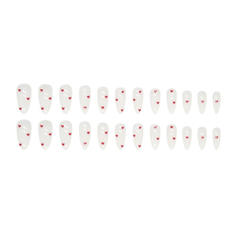 24Pcs Valentine's Day Milky White Press on Nails Medium Almond Fake Nails with Red Heart Design False Nails Valentines Day Cute Acrylic Stick Glue on Nails for Women Girlfriend Gift
