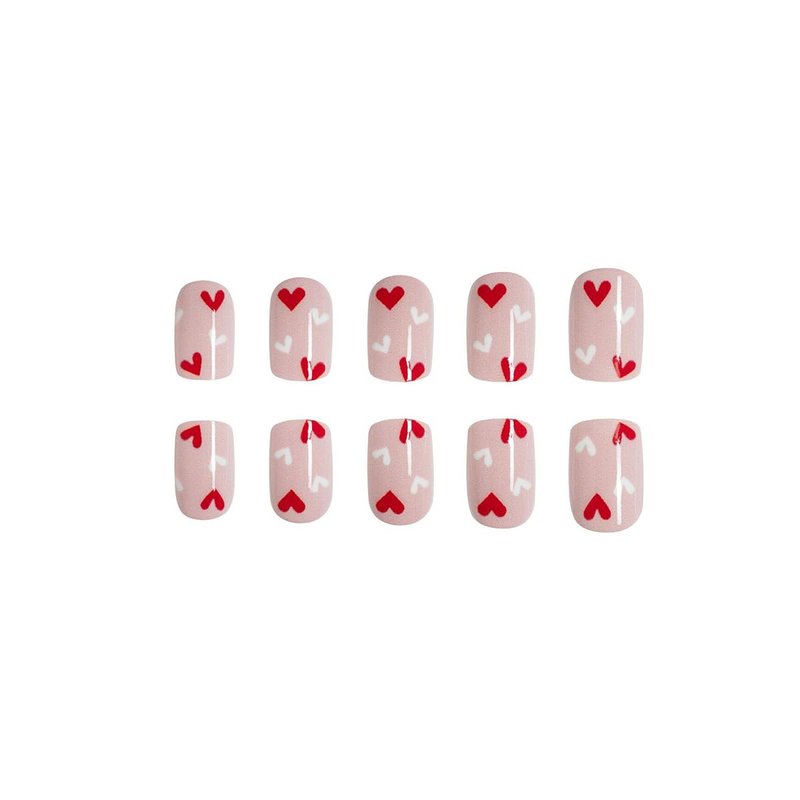 - 💖【Valentine's Day Nails Set Package Contents】24 Pcs Valentines Heart Fake Nails +1 Nail File + 24 Pcs Jelly Glue Stickers+1 Wooden Stick.(Durability of jelly glue is not as good as liquid glue, but it makes short fake nails reusable. Please use suitable glue according to different scenes)