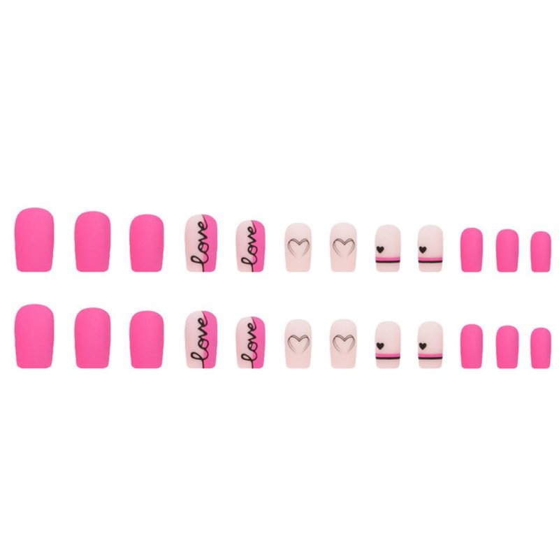 24Pcs Valentine's Day Press on Nails Pink Square Fake Nails Full Cover with Black Love Design Glossy Glue on Nails Artificial False Nails Supplies Charms Acrylic Nails Decoration for Women Nail Art