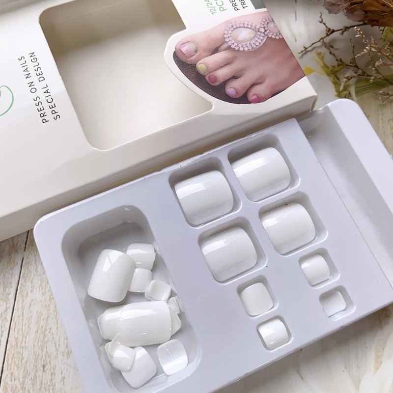 - 【Premium Quality】 Toenail press ons made with firm ABS material, strong adhere, flat, no chipped and not easy to fade. It can be reused.