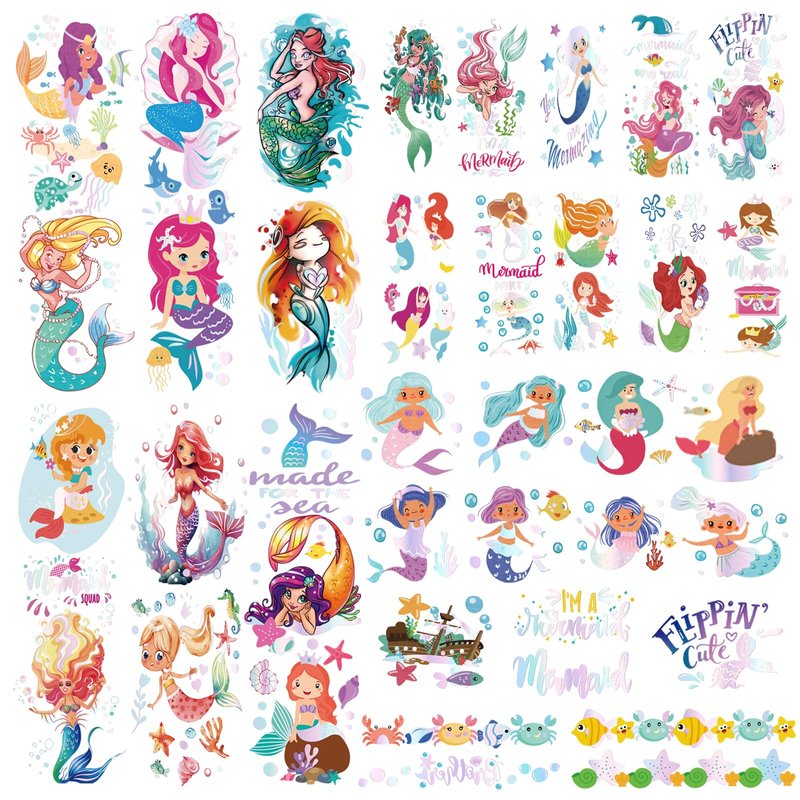 - ❥[WITH THE THEME OF HAPPY PARTY] With the theme of mermaid, temporary tattoos are hippie-themed. Like mermaid sea world, shell Golden Metallic sticker etc. Good choice for boys or girl family party, birthday party, festival party...The fake tattoo can show your personality and express your ideas