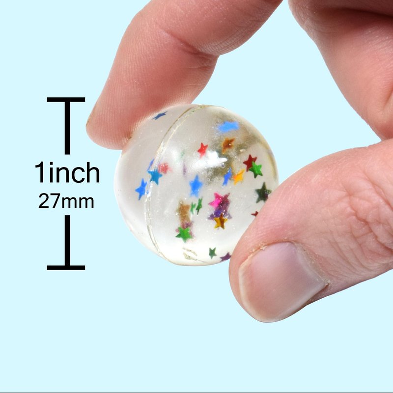 - STAR THEMED - Each ball is transparent, filled with a mesmerizing array of colorful stars suspended inside, creating a captivating visual effect with each bounce.