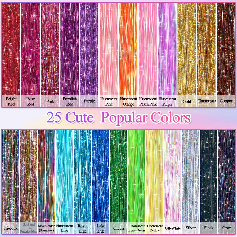 - Color: 25 Colors Hair Tinsel