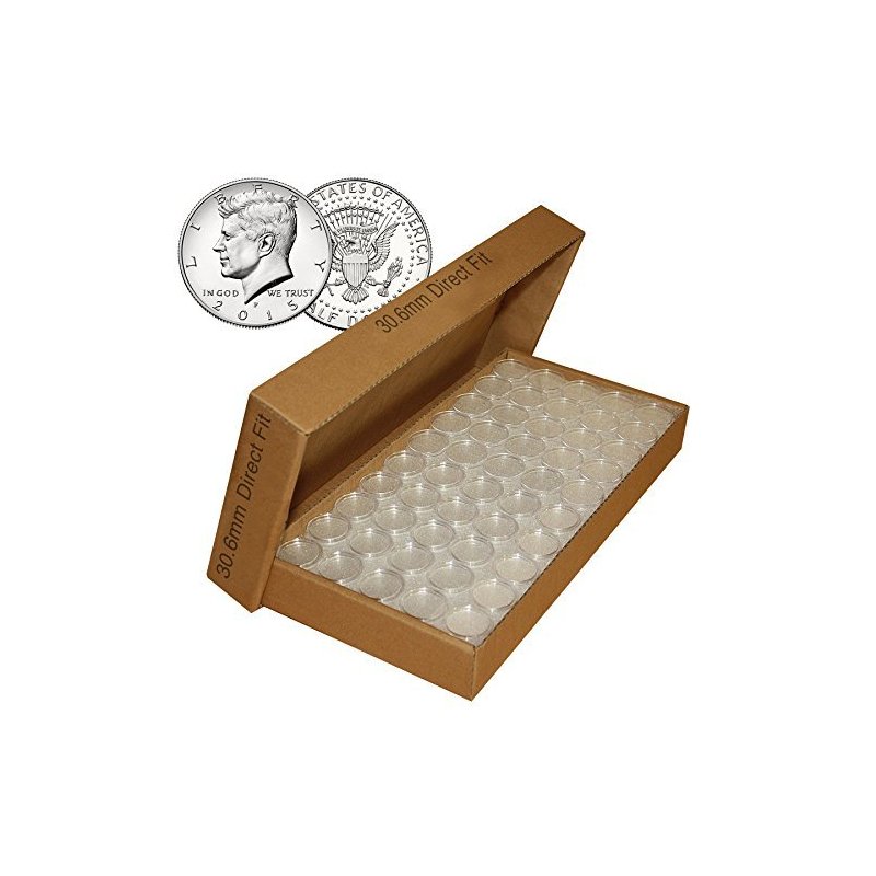 25 Direct Fit Airtight 30.6mm Coin Holders Capsules For JFK HALF DOLLAR w/BOX