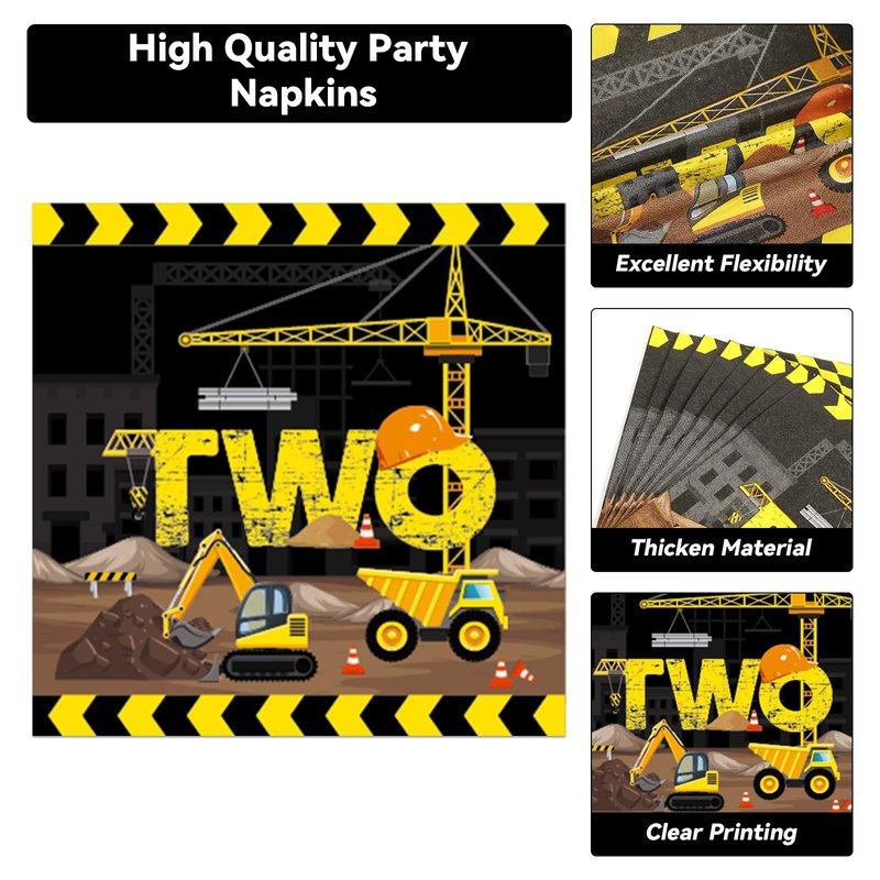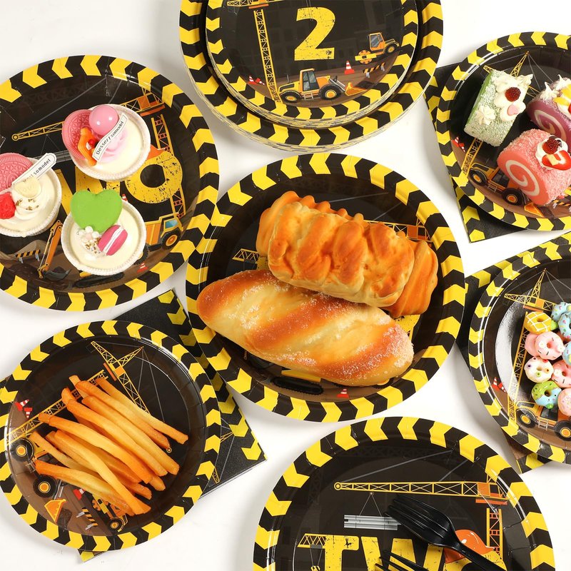 - 【Enjoy the Party, Save Time】You'll be able to host a construction theme birthday party that will impress your guests all night long. And when the party's over, you can spend more time with your family or friends and less time cleaning up. That's why we designed this construction truck-themed birthday party tableware set.