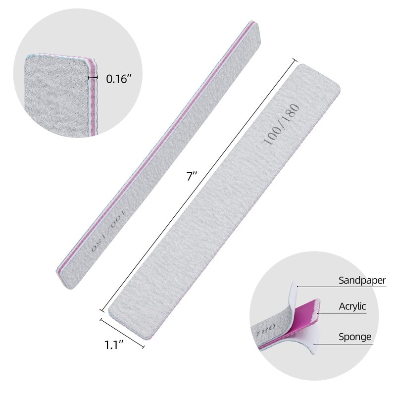 - 100/180 Grit Nail Files - Double sides have Different Functions, file and rough up the hard fingernails and toe nails in 100 grit, and use 180 grit smooth up your nail edge