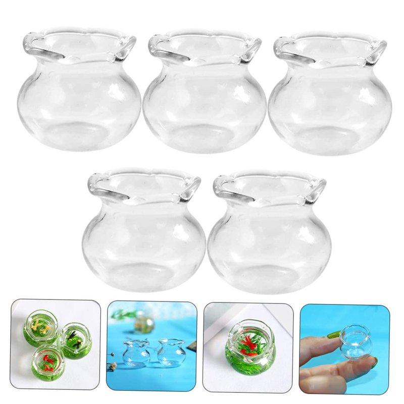 25 Pcs Doll House Fish Tank Desktop Accessories Toys Miniature Glass Ornaments Miniature Model Glass Miniature Accessories Toys Simulated Fish Bowls