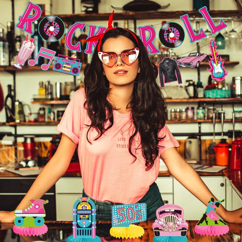 - 🍨Premium Material: These 50s rock music honeycomb centerpiece decorations and banners are made of quality-thick cardstock, which is more durable, and non-toxic. The 1950s classic symbol foil hanging swirls are made of foil and paper material, cut perfectly.