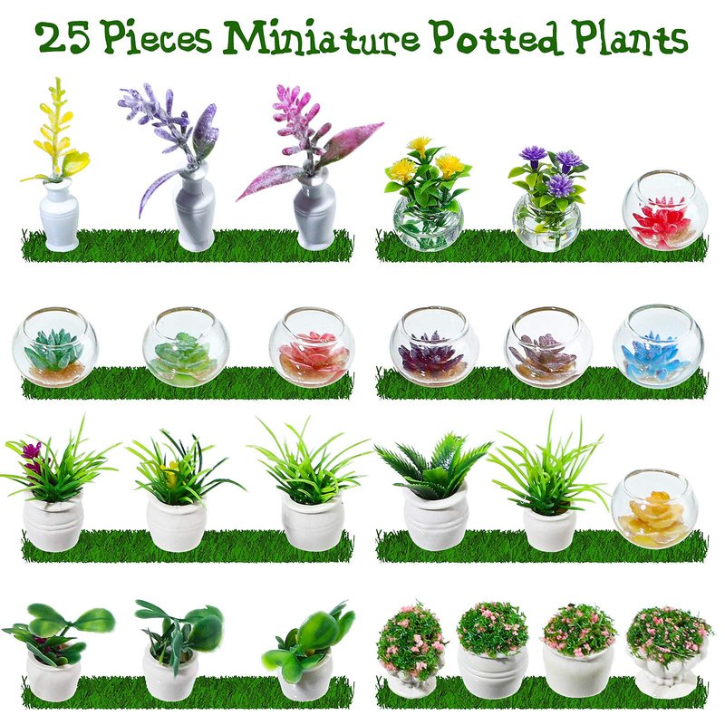 - Cute and vivid miniature ornaments: these adorable miniature green and fake succulent pot plants are nice decors for mini landscape, garden, dollhouse and more; In the doll house, these attractive mini decoration set is also ideal for office, bedroom, living room, bathroom, kitchen, balcony, entrance hall and more, easily giving you pretty visual enjoyment
