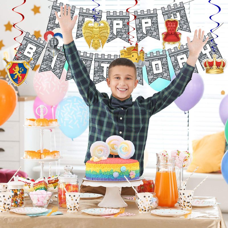 - What you will get: package comes with 1 piece of medieval birthday banner, 12 pieces medieval theme cards with 6 styles and 12 pieces spiral in 3 colors, enough quantity and nice decoration for assisting you to prepare an unforgettable and joyful party, especially medieval theme party