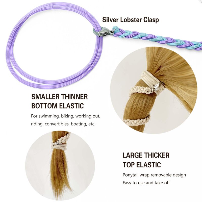 - HOW TO USE: 1: Use the larger loop to make a ponytail. Be sure to keep the braided part out of the way; 2: Hold the elastic taut (but not too tight) and wrap it around the ponytail. Make sure the elastic loops are tight and do not slide, and evenly spaced along the length of the entire ponytail; 3: Wrap the small loop around the end like a braid.
