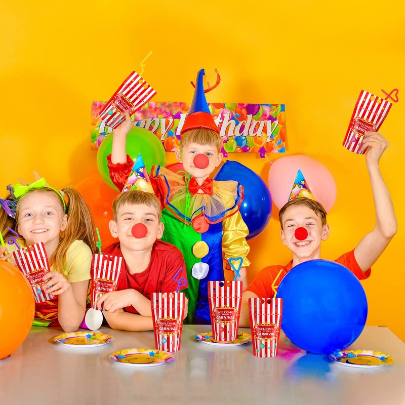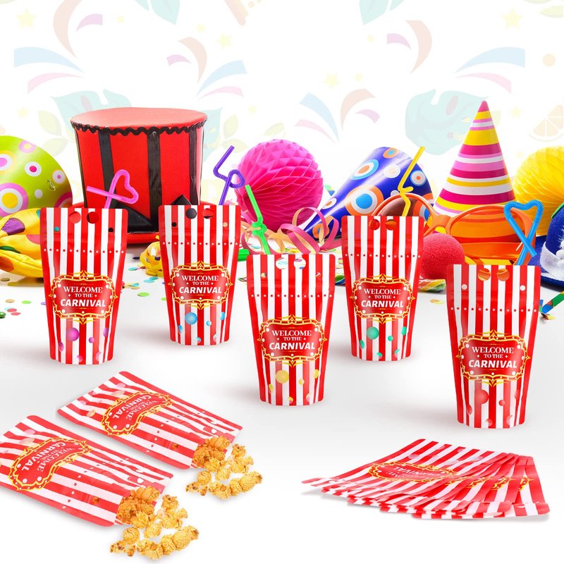 - Carnival Theme Party Decorations Application: carnival bags for drinking supplies are printed with red stripe for carnival party supplies, so match with carnival party tablewares and circus party supplies for kids birthday party, carnival decorations, classroom circus decorations, carnival party games, carnival theme baby shower