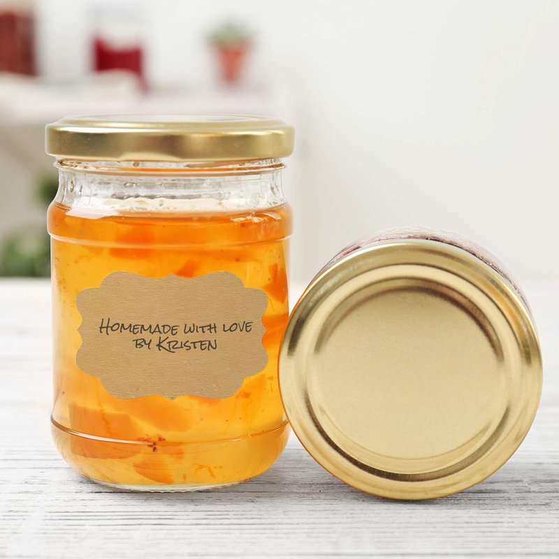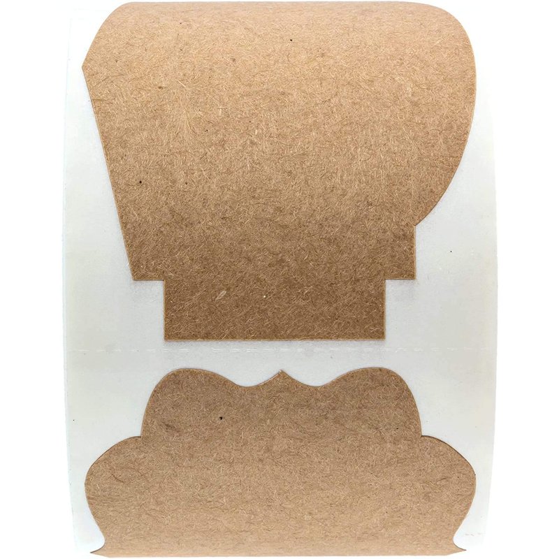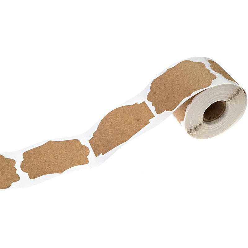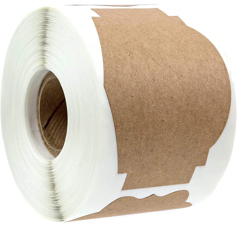 - Design: 3 high quality brown kraft stock alternating vintage design style shapes. Permanent adhesive sticks to most dry, flat surfaces. Perforation between each label allows easy dispensing.