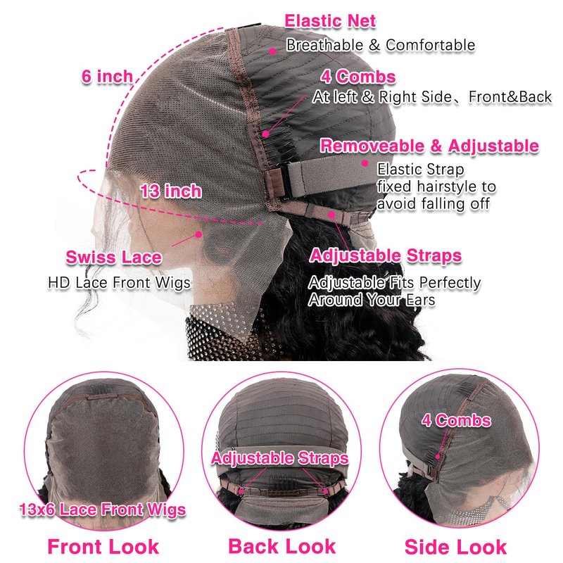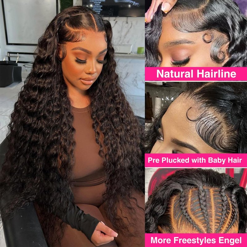 - 💖【Human Hair Wigs Styles.】Our Deep Wave lace front wigs human hair features a 13x6 full frontal that allows for versatile parting, including deeper side parting. The HD transparent glueless wigs human hair pre plucked blends seamlessly with all skin tones, and we provide guidance on achieving different parting styles.